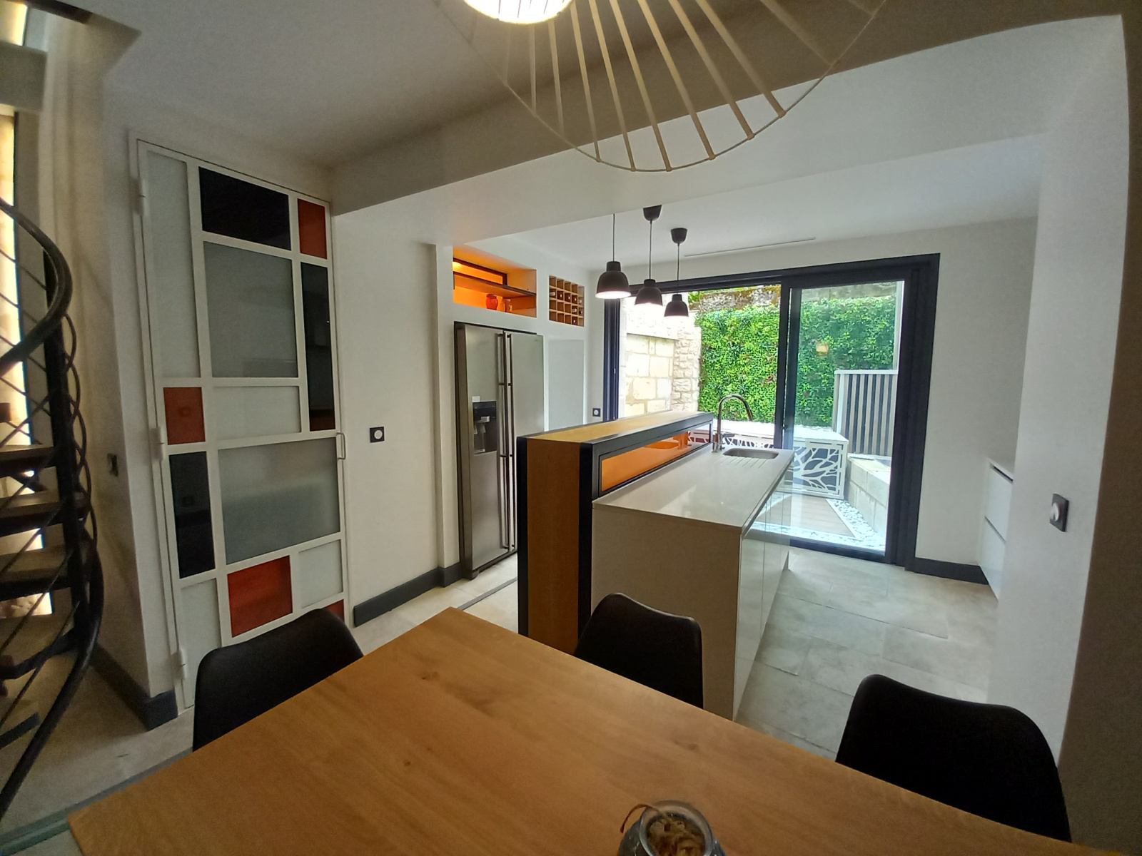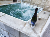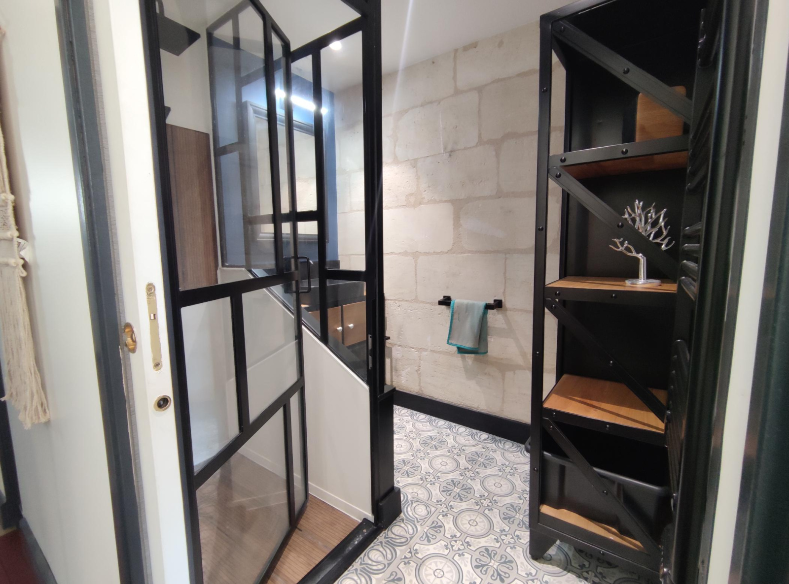 Bordeaux Métropole - Vieux Lormont - Charmante maison en pierre de 76 m² - entièrement rénovée avec prestations de qualité, comprenant au RDC une pièce de vie de 34 m² avec une cuisine ouverte entièrement équipée donnant sur une cour intérieure de 9 m² sans vis à vis avec espace jacuzzi intégré.